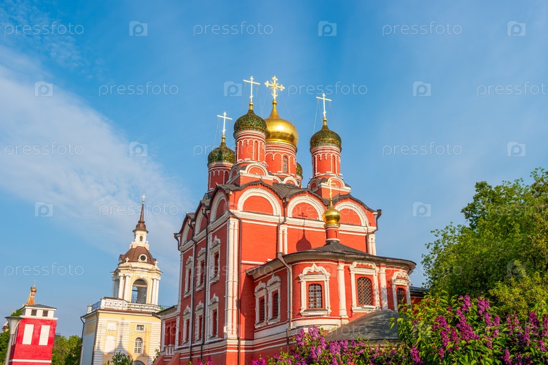 Москва, Россия. собор иконы Божией Матери Знаки. парк Зарядье. весеннее солнечное утро