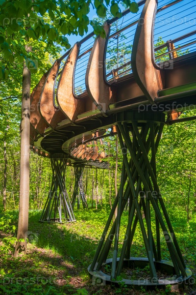 Москва, Россия.Экотроп воздуха на вершинах деревьев, территория парка Шереметьево Дубрава.ВДНХ Солнечное весеннее утро