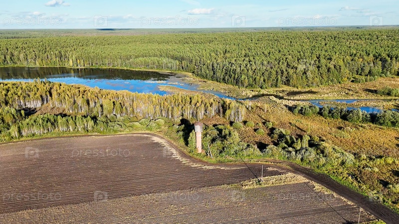 Екатеринбург, Россия.Старая водяная башня на краю поля.Сегодня вечером.Ранняя осень. мастер Фотографии - Дрони - Круг (далеко), Вид с воздуха