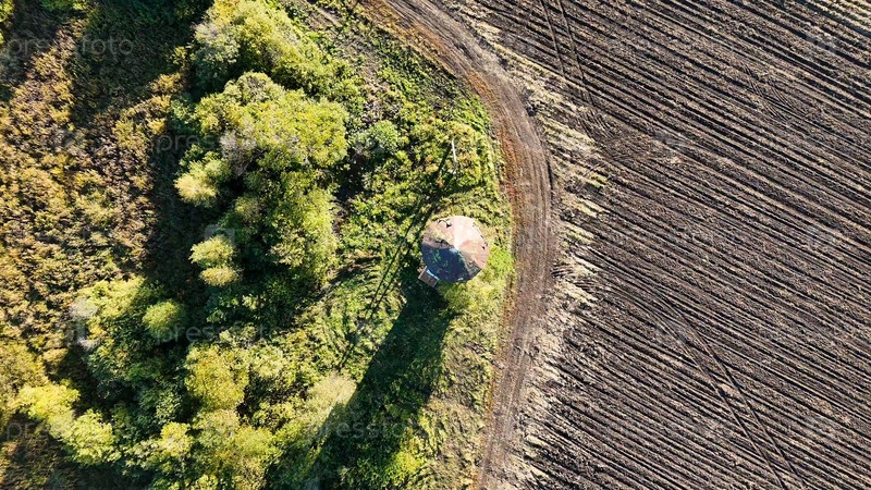 Екатеринбург, Россия.Старая водяная башня на краю поля.Сегодня вечером.Ранняя осень.Мастер-снимки - Камера вниз и спуск, Aerial View