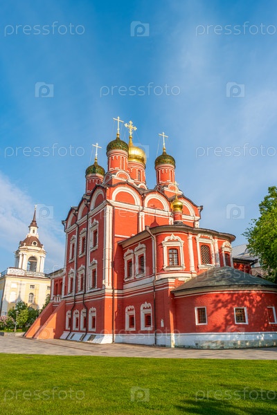 Москва, Россия. собор иконы Божией Матери Знаки. парк Зарядье. весеннее солнечное утро