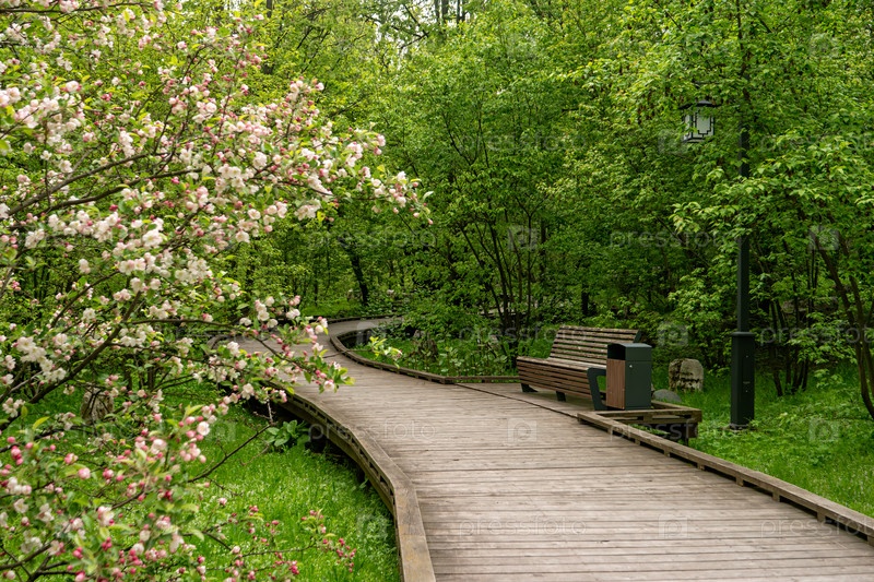 Москва, Россия. Китайский парк - Хуаминг. Извилистый путь. Весенний вечер