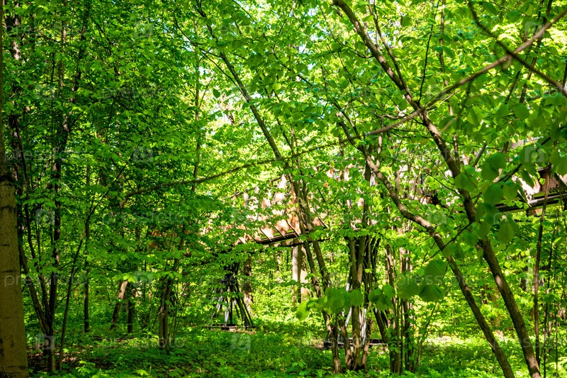 Москва, Россия.Экотроп воздуха на вершинах деревьев, территория парка Шереметьево Дубрава.ВДНХ Солнечное весеннее утро