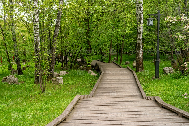 Москва, Россия. Китайский парк - Хуаминг. Извилистый путь. Весенний вечер