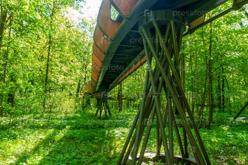 Москва, Россия.Экотроп воздуха на вершинах деревьев, территория парка Шереметьево Дубрава.ВДНХ Солнечное весеннее утро