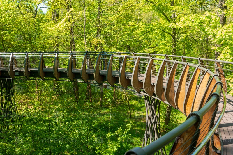 Москва, Россия.Экотроп воздуха на вершинах деревьев, территория парка Шереметьево Дубрава.ВДНХ Солнечное весеннее утро