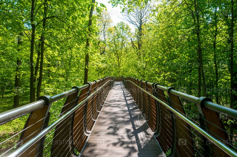 Москва, Россия.Экотроп воздуха на вершинах деревьев, территория парка Шереметьево Дубрава.ВДНХ Солнечное весеннее утро