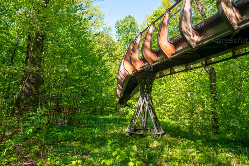Москва, Россия.Экотроп воздуха на вершинах деревьев, территория парка Шереметьево Дубрава.ВДНХ Солнечное весеннее утро