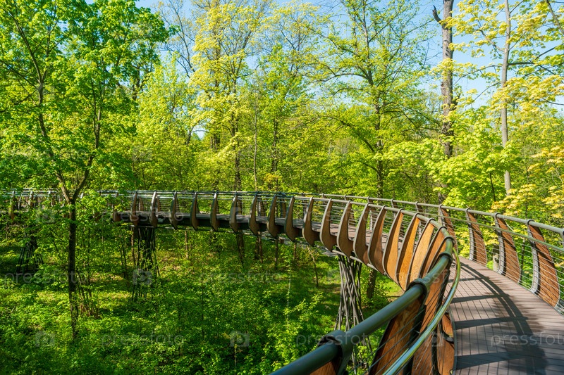 Москва, Россия.Экотроп воздуха на вершинах деревьев, территория парка Шереметьево Дубрава.ВДНХ Солнечное весеннее утро