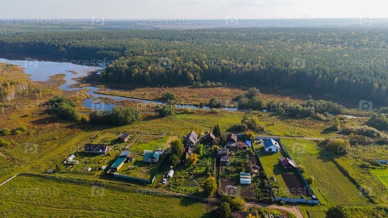 Екатеринбург, Россия. Дом на окраине деревни рядом с полем. Вечером. мастер Фотографии - Дрони - Круг (далеко), Вид из воздуха