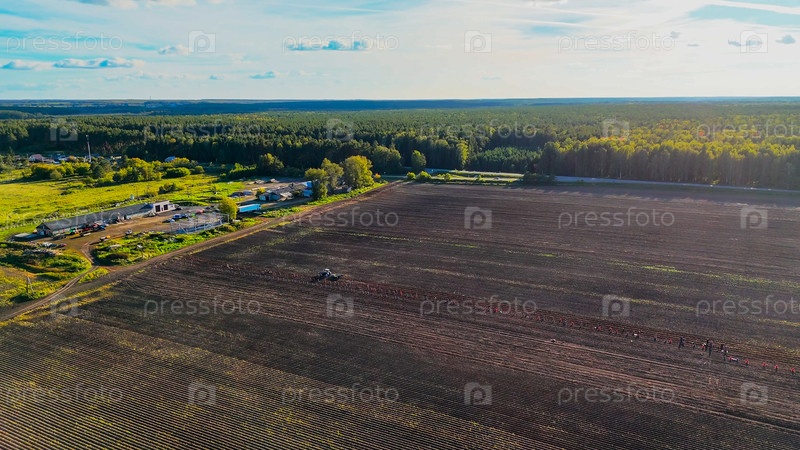 Екатеринбург, Россия.Арное поле.Урожай.Очистка картофеля.Сегодня вечером.Ранняя осень, вид с воздуха