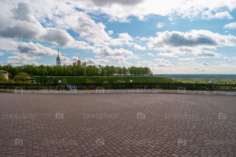 Владимир, Россия. смотровая площадка. вид на Свято-Успенский собор и памятник князю Владимиру и святому Феодору