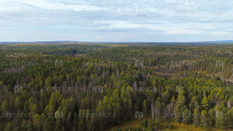 Бажуково, Россия. Осенний ландшафт. Река Серга. Рейндерные ручьи - природный парк в лесистой местности, известный своей богатой флорой, вид с воздуха