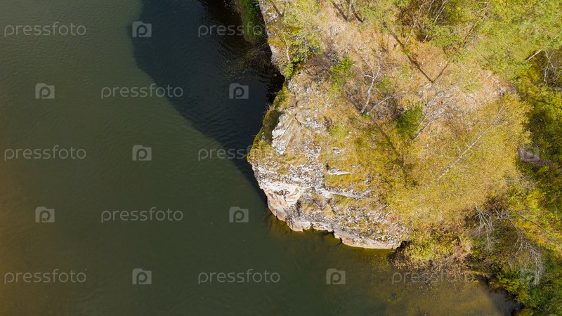 Бажуково, Россия. Фрогстоун. Осенний пейзаж. Река Серга. Рейндерные ручьи - природный парк в лесистой местности, известный своей богатой флорой, вид с воздуха