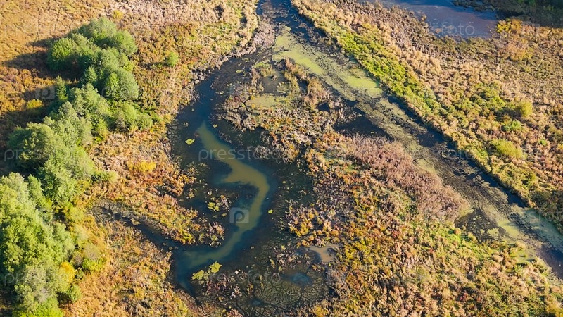 Екатеринбург, Россия. болотистые реки и пруд. вечером. мастер Фотографии - Круг (близкий), вид с воздуха