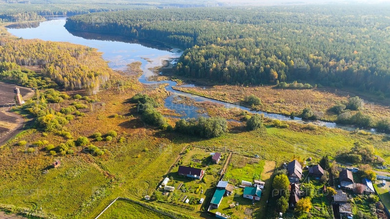Екатеринбург, Россия. болотистые реки и пруд. вечером. мастер Фотографии - Круг (далеко), вид с воздуха