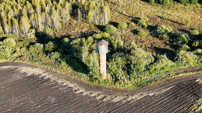 Екатеринбург, Россия.Старая водяная башня на краю поля.Сегодня вечером.Ранняя осень. мастер Фотографии - Дрони - Круг (далеко), Вид с воздуха