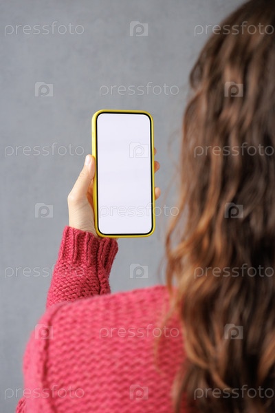 Изображение женщины в розовом, сидящей внутри дома с помощью своего смартфона