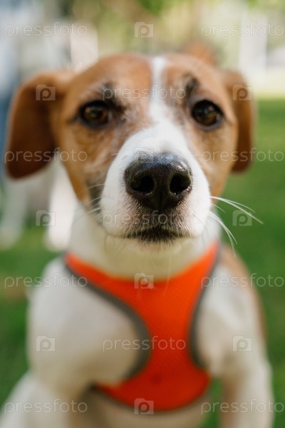 Собака-терьер Джек Расселл в парке на проводе со своим хозяином