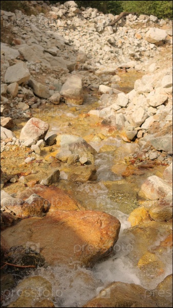 Горная река, вид на горы и деревья в лесу. природа, походы в дикой природе