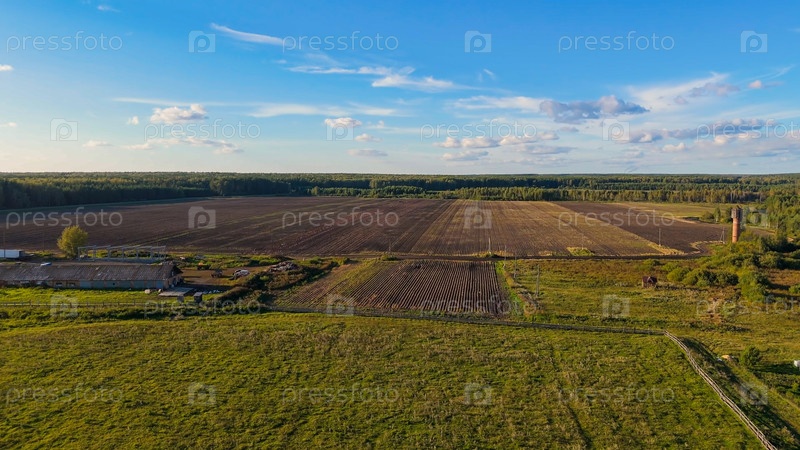 Екатеринбург, Россия.Арное поле.Урожай.Очистка картофеля.Сегодня вечером.Ранняя осень, вид с воздуха