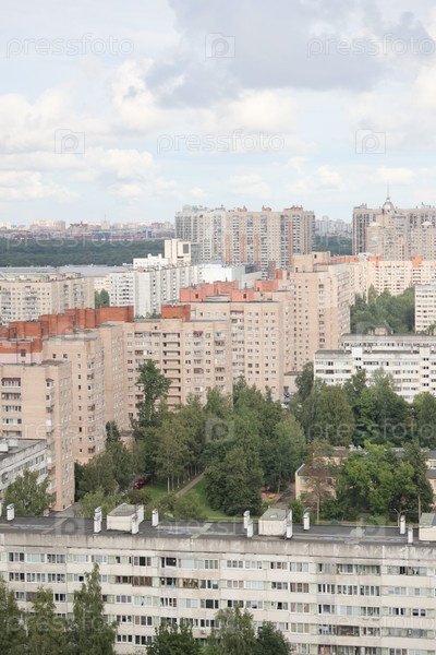 Многоэтажные здания с видом на жилую городскую зону с зелеными парками
