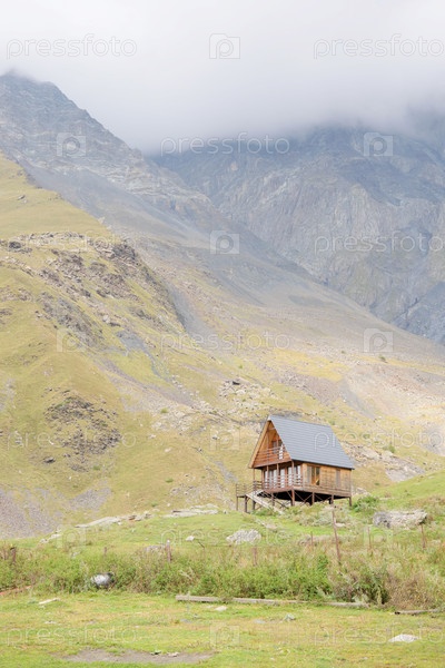 Деревянный дом в горах Казбеги. отличное место для отдыха и туризма