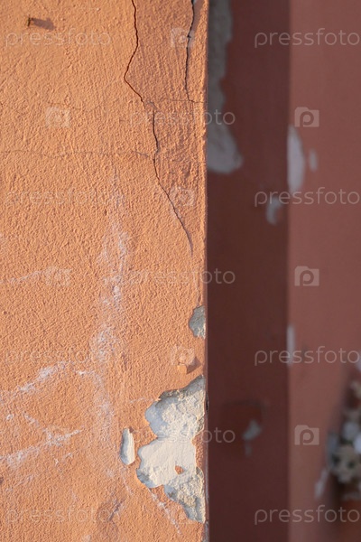 Историческая архитектура из старинной штукатурки в парке. стена с трещинами красного классического стиля в общественном парке