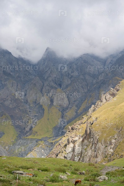 Летний день в диких горах с хвойными лесами и скалистыми склонами