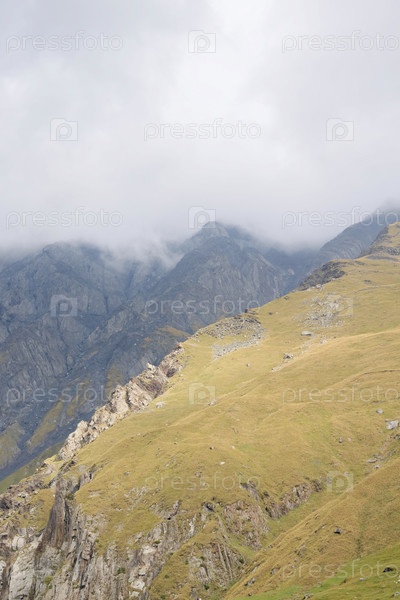 Летний день в диких горах с хвойными лесами и скалистыми склонами