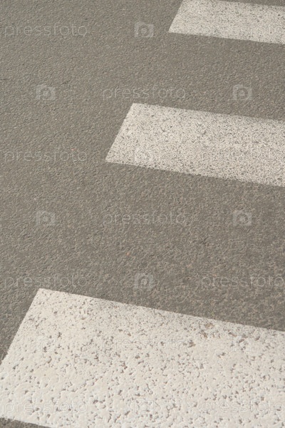 Пешеходный переход с белыми линиями маркировки на темной асфальтированной дороге