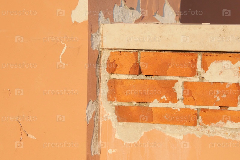 Историческая архитектура из старинной штукатурки в парке. стена с трещинами красного классического стиля в общественном парке