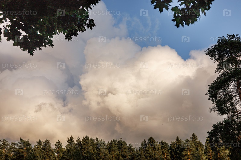 Живописное небо над лесом в летний сезон