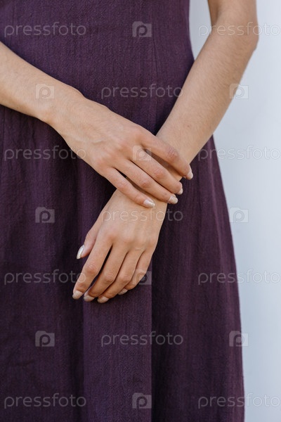 Близкий портрет рук афроамериканской женщины на фоне коричневого платья