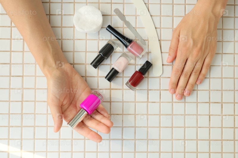 Вид сверху Человек выбирает лак для ногтей, чтобы окрасить ногти