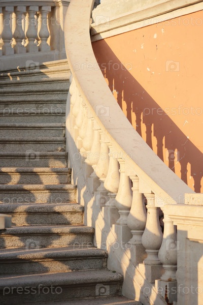 Историческая архитектура балюстрадных лестниц в парке. каменные ступени и балустрады классического стиля
