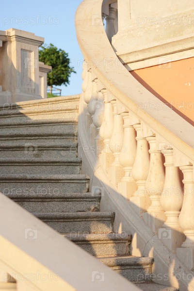 Историческая архитектура балюстрадных лестниц в парке. каменные ступени и балустрады классического стиля