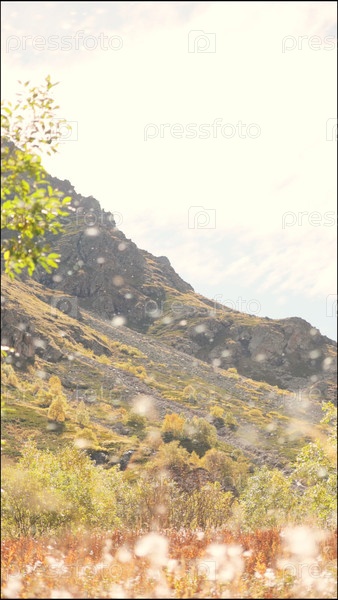 Вид на горы и сухие растения, которые рассеивают семена. прекрасный вид на чай Иван