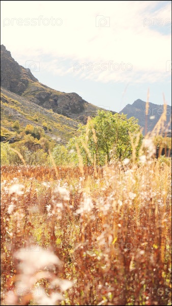 Вид на горы и сухие растения, которые рассеивают семена. прекрасный вид на чай Иван