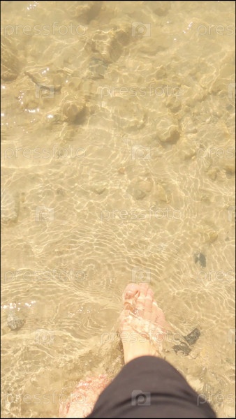 Голый мужчина входит в чистую холодную горную комнату, солнечный день в горах