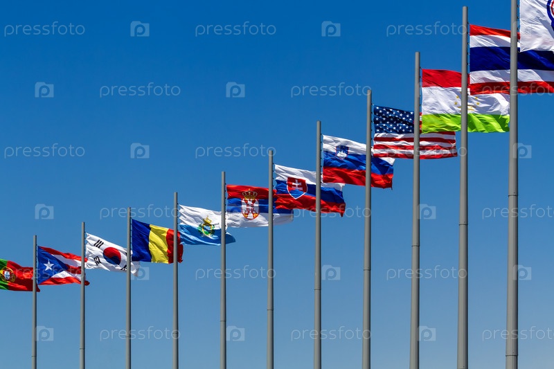 Флаги стран против голубого неба