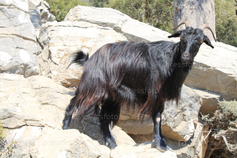 Черная домашняя коза на острове в Эгейском море