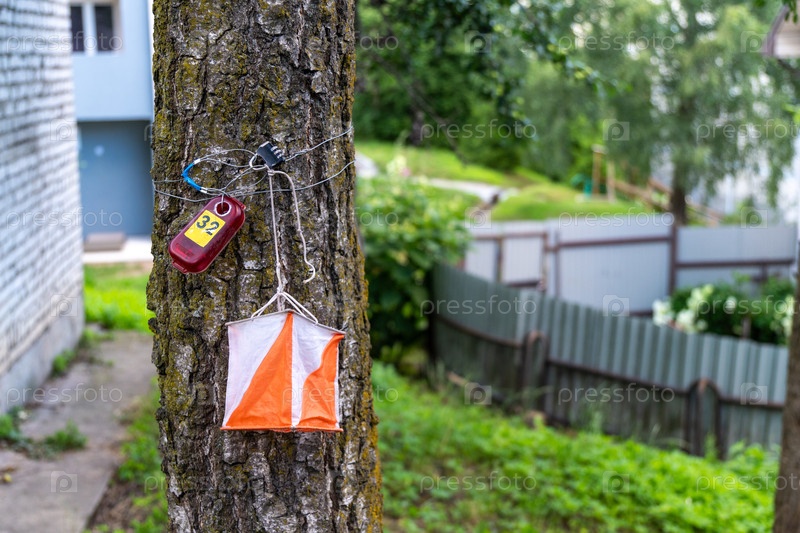 Контрольный пункт уличной ориентации с призмой и электрическим композитором, прикрепленным к дереву