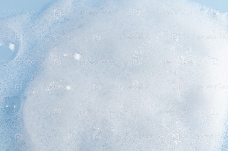 Шикарная белая пушистая пена, текстура мыльной пены с прозрачными пузырями на синем фоне. Копировальное пространство. Планирование рекламы моющих средств, курортной косметики