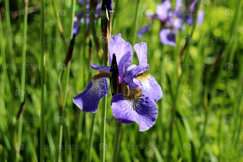 Цветок синей радуги с почками в саду в солнечный летний день