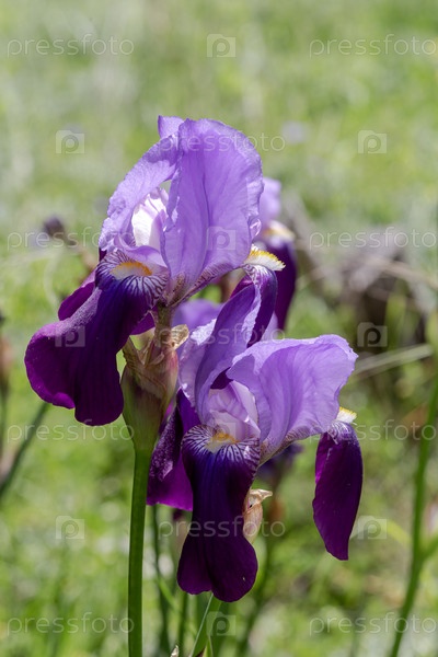 Деликатный садовый ирис (Iridaceae), растущий в клумбе