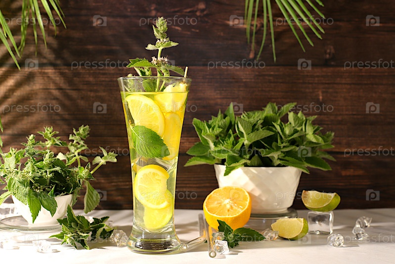 Монета алкогольный или безалкогольный коктейль с лимоном, лаймом и льдом. Минималистская концепция бара, рецепт испанской сангрии, рекламный баннер для кафе. Современная натюрмортизация со летними напитками диета по детоксикации