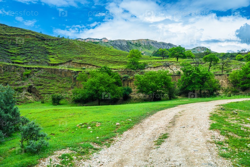 Красивый горный пейзаж с грунтовой дорогой.Дагестан, Кавказ
