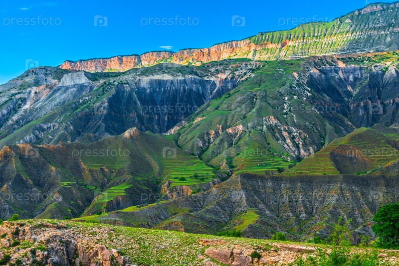Живописный горный пейзаж в ясную солнечную погоду.Кавказ