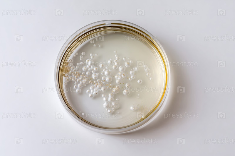 Чашка Петри с колониями плесени на белом фоне